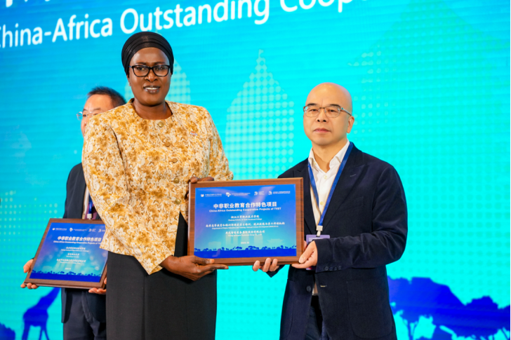 The conference was held under the guidance of the China Education Association for International Exchange (CEAIE), the Association of Technical Universities and Polytechnics in Africa (ATUPA), and the United Nations International Children’s Emergency Fund (UNICEF) China Office, and was jointly hosted by the Jinhua Municipal People’s Government and the Zhejiang Provincial Department of Education. Wang Yan, Vice President of ZJITC, was invited to attend the meeting and participated in the outcomes release session. At the awarding ceremony, Jahou Samba Faal, Secretary General of ATUPA, presented plaques to ZJITC and other institutions to honor their outstanding cooperative projects in TVET.