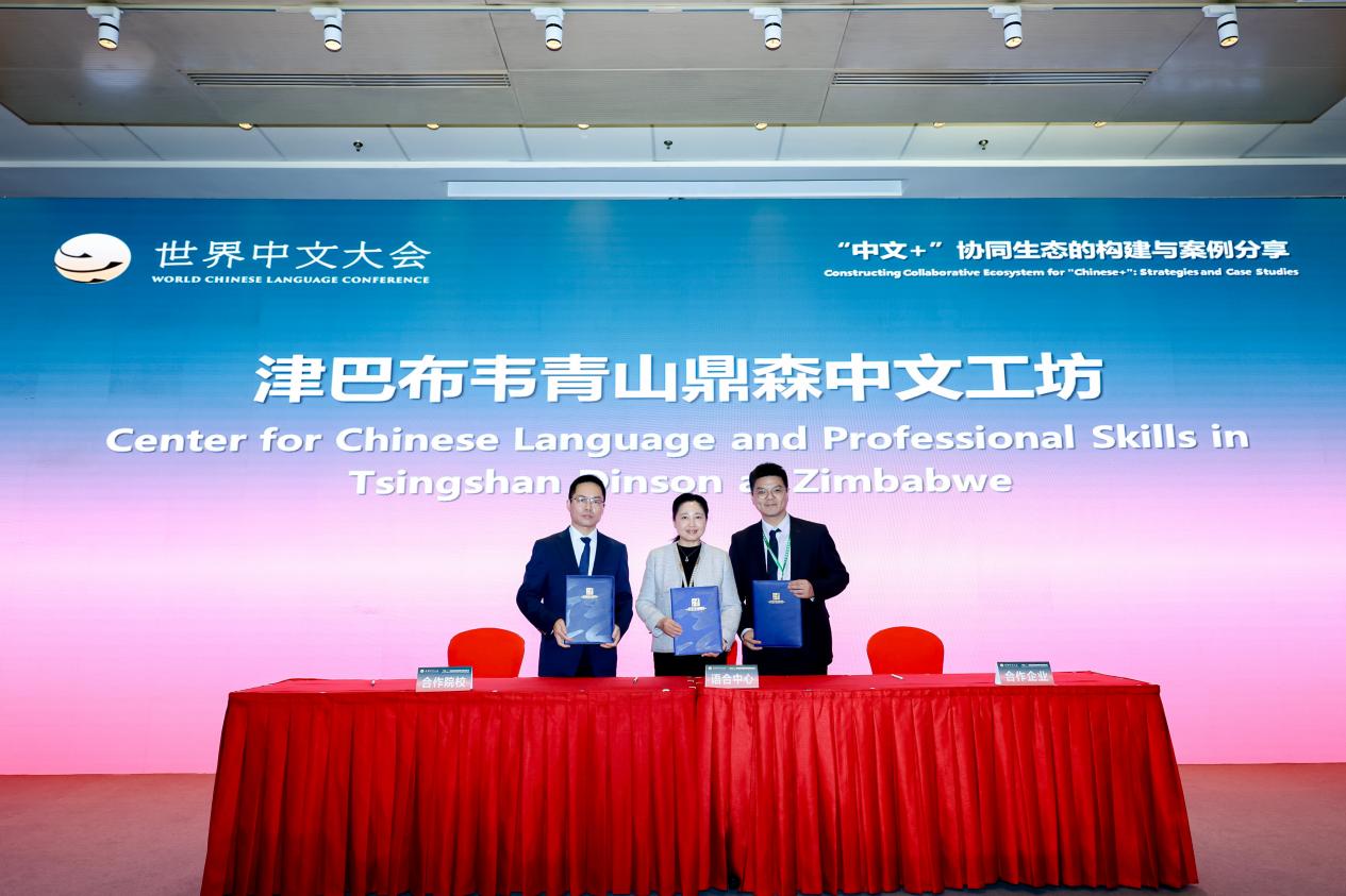 Yu Chuang, President of Zhejiang Industry & Trade Vocational College (ZJITC), and He Shaobo, Assistant General Manager of Dinson Holding of Tsingshan Industry, attended the conference as official representatives. During the event, they jointly signed a co-construction agreement with Yu Tianqi, Deputy Director of the Center for Language Education and Cooperation (CLEC) under China’s Ministry of Education, for the newly established “Center for Chinese Language and Professional Skills in Tsingshan Dinson at Zimbabwe”. The successful selection for the program marks a major breakthrough in ZJITC’s international school-running efforts and another substantial achievement in supporting China’s international industrial capacity cooperation and national strategies.