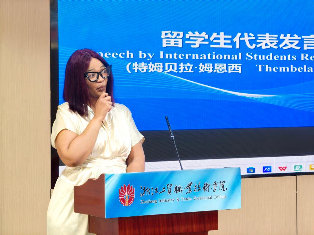 Thembela Mnci, an international student representative, expressed sincere gratitude to ZJITC for its guidance and support. She reviewed the fruitful achievements over the past six months, including academic learning, cultural and sports activities, industrial visits, and business matchmaking events. She said that this experience was one of the most precious experiences in her life. She not only mastered the Chinese language and acquired practical skills in cross-border e-commerce and artificial intelligence, but also gained deep insights into Chinese culture, made many Chinese friends, and expanded trade connections. She added that she would continue to pursue her dreams with this precious experience.