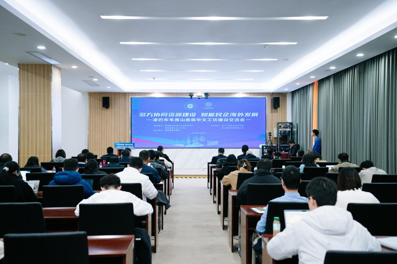 On December 5, Zhejiang Industry & Trade Vocational College (ZJITC) held the exchange conference at its Oujiangkou Campus in Wenzhou, Zhejiang Province, on advancing the development of the Center for Chinese Language and Professional Skills at Tsingshan Dinson in Zimbabwe. The event was organized under the guidance of the Center for Language Education and Cooperation of the Ministry of Education and the China Nonferrous Metals Industry Talent Center (CNMITC), co-hosted by ZJITC and Zhejiang Dinson Holding Co., Ltd., and supported by Higher Education Press. Under the theme “Multi-Party Collaboration in Resource Development to Empower the Global Expansion of Private Enterprises”, participants engaged in in-depth exchanges on topics such as the development and international implementation of “Chinese + Vocational Skills” teaching resources. Those present included CNMITC Director Song Kai, ZJITC President Yu Chuang and Vice President Wang Yan, Li Guangliang, Director of the Overseas Publishing Department of Higher Education Press, Professor Wang Fahong from Binzhou Polytechnic and member of the National Mechanical Vocational Education Teaching Steering Committee, and Tungamirai Eric Mupona, Vice Chairman of the China-Zimbabwe Exchange Center. The conference was chaired by Vice President Wang Yan.