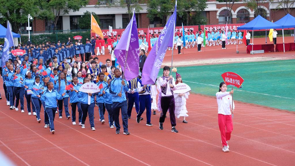 On the campus of Zhejiang Industry & Trade Vocational College (ZJITC) in golden autumn, vitality and passion fill the air everywhere. Recently, the 2025 ZJITC Campus Sports Meeting kicked off simultaneously at Oujingkou Campus. On the sports field, in addition to the striving figures of Chinese students, a group of international students from South Africa, Kazakhstan a stood out remarkably—dressed in their traditional costumes, they carried their love for sports and enthusiasm for campus life, unleashing their energy to the fullest in the opening ceremony parade, cultural performances, and track-and-field events. They became a vibrant youth scene full of "international flair" at the sports meeting.